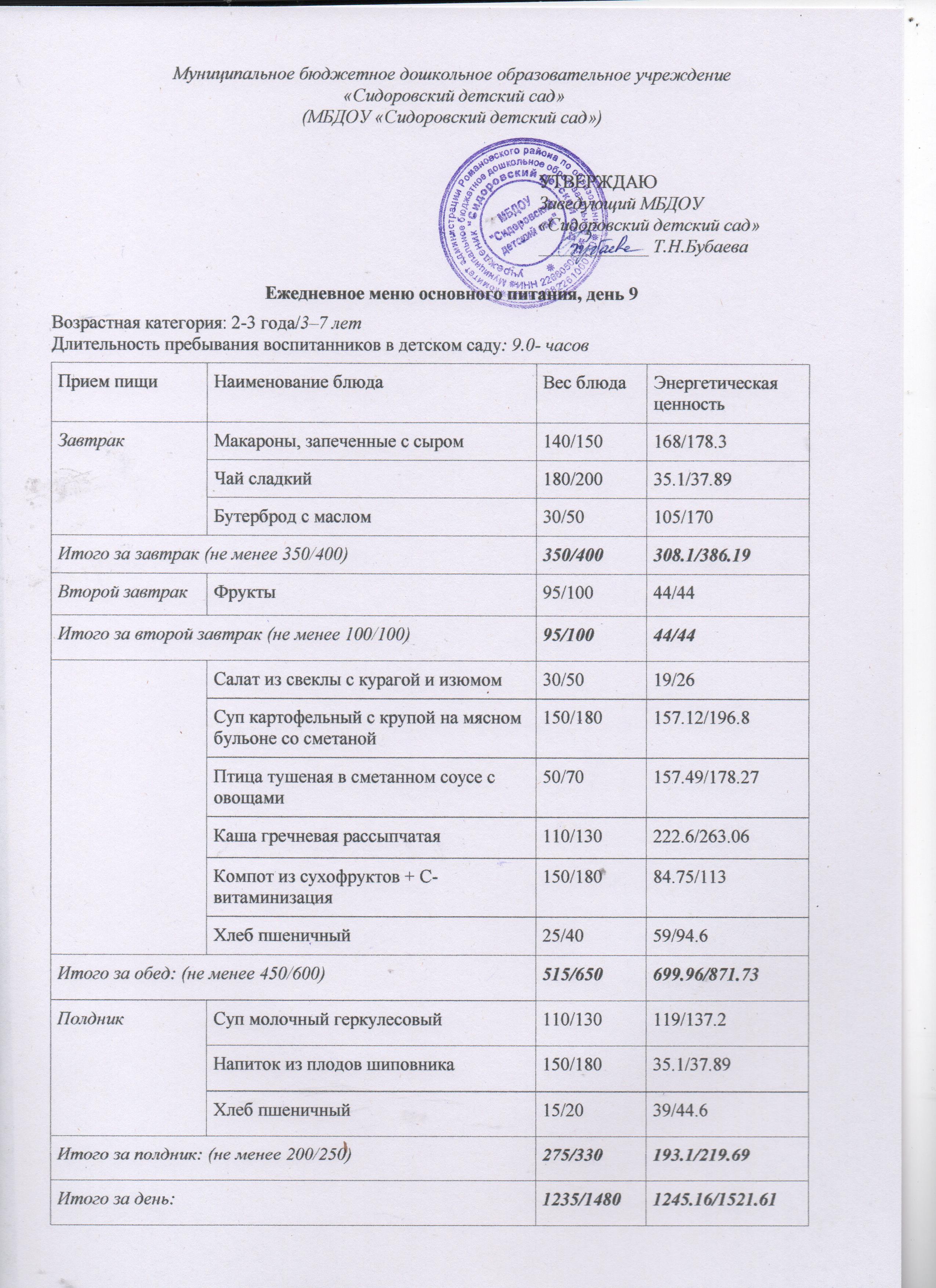 Ежедневное меню основного питания на 27.02.2026